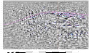 Figure 3: A West->East line over Bokor Central showing the anticline, unconformity and some bright spots.